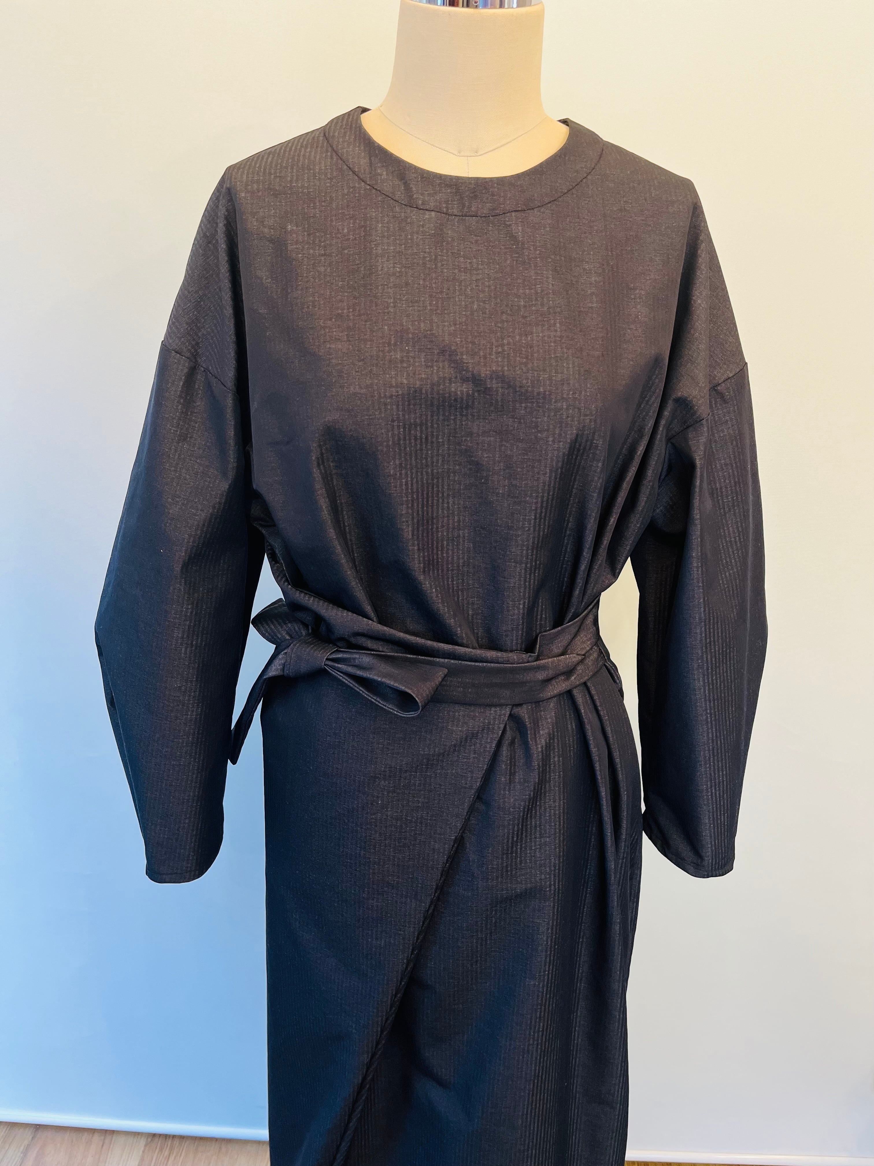 アシンメトリーラップワンピース(黒ストライプ)