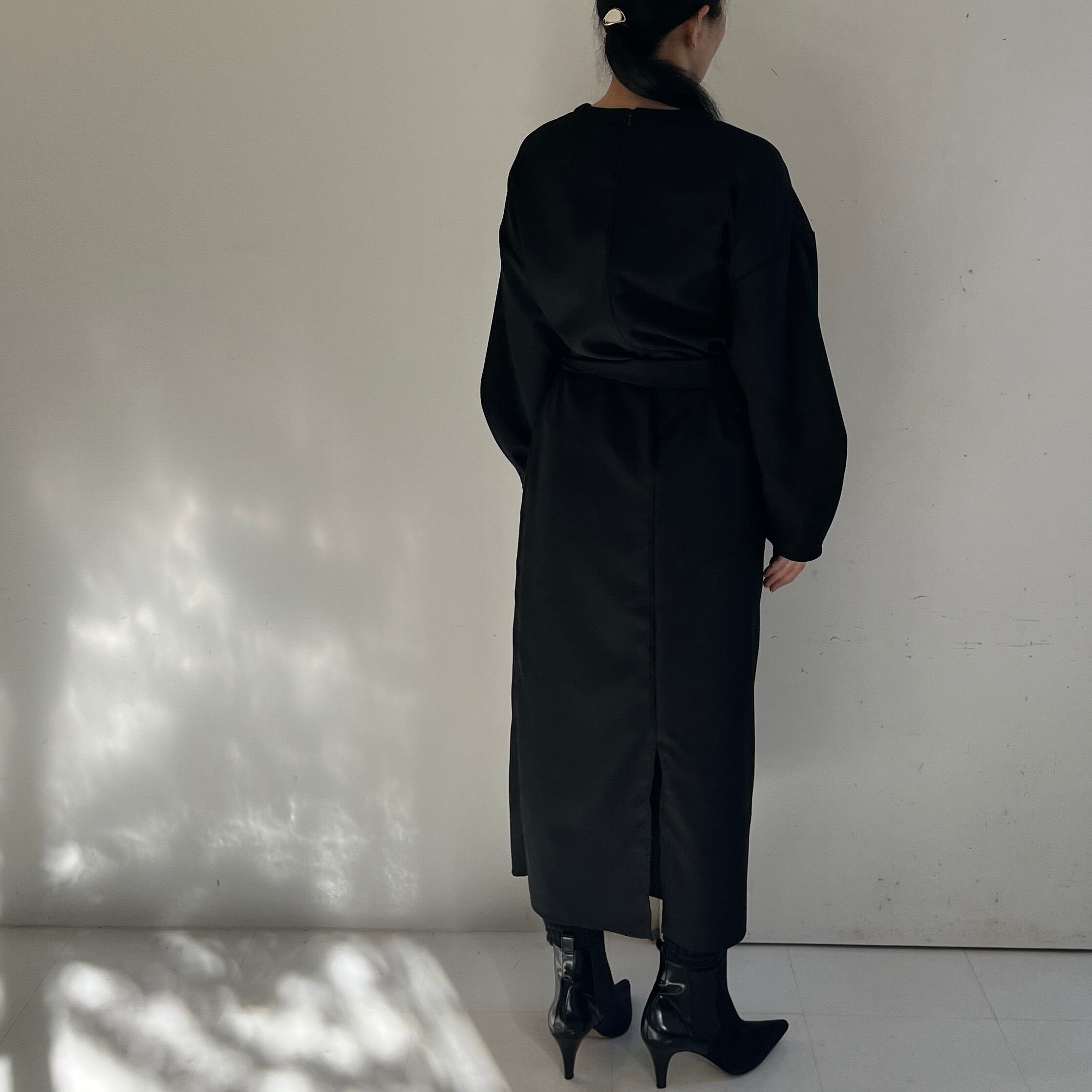 ベースはロングタイトシルエットで、ウエストマークするとIラインのシルエットになり、スタイルアップして見えるのでお勧めです。